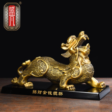 盛凡 纯铜麒麟摆件 大号财富麒麟一对 客厅家居招财风水装饰品