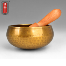 盛凡 金钵转经铜钵佛音碗尼泊尔手工佛教静心钵梵音修行碗铜磬