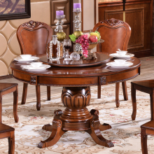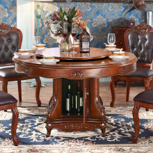 圆桌欧式实木餐桌圆形美式大圆桌送转盘1.2/1.3/1.5/1.8餐厅桌子