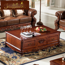 欧式茶几全实木客厅茶几仿古雕花美式带抽屉茶几1.6米方形茶几