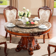 欧式圆形大理石圆桌 实木餐桌饭桌送转盘餐厅家具奢华大理石餐桌