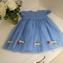 蓝色梦幻 草莓兔子星空闪闪 冰雪奇缘女童纱网连衣裙 礼服裙