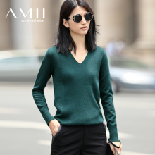 AMII[极简主义]秋冬新款修身桃心领套头大码女装针织衫套头毛衣女