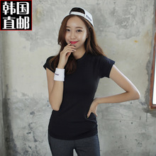 韩国正品代购春夏新款运动健身圆领短袖T恤女 超弹修身显瘦瑜伽服