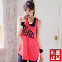 韩国代购瑜伽服休闲衫字母网纱镂空长款宽松透气新款背心健身服女