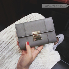 香港代购2017新款钱包女短款潮真皮搭扣牛皮小钱夹简约三折皮夹