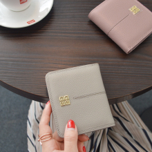 香港代购2017新款真皮短款小钱包女简约三折搭扣牛皮卡位钱夹