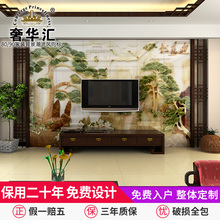 奢华汇 瓷砖背景墙中式客厅风水画山水瓷砖画电视雕刻3d陶瓷墙砖