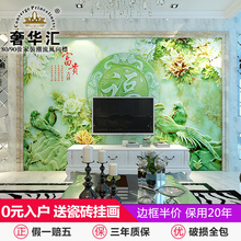 奢华汇瓷砖背景墙欧式电视背景墙砖中式客厅现代玉雕3D雕刻迎客松