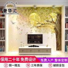 瓷砖背景墙 奢华富贵客厅电视背景墙 陶瓷仿石艺术砖壁画 黄金树