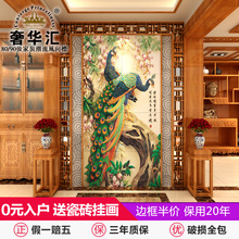 中式屏风瓷砖背景墙砖 玄关隔断壁画竖画过道走廊瓷砖 彩雕孔雀图