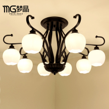 梦晶美式客厅吊灯餐厅灯卧室灯复古创意欧式灯吊灯铁艺灯具客厅灯