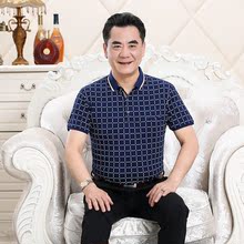 夏季中老年男士T恤中年翻领休闲上衣薄款短袖格子爸爸装