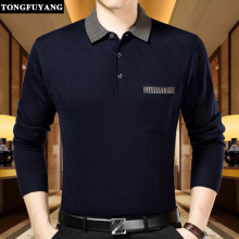 同福羊中年男士长袖T桖厚款秋冬装 中老年人t恤男长袖翻领体恤
