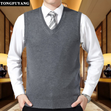 中年男士开衫毛衣马甲男v领针织背心秋冬款中老年坎肩马甲爸爸装