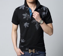 男士短袖t恤纯棉修身打底polo衫夏季枫叶翻领T恤青年男装半袖上衣