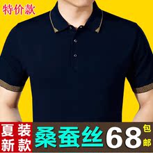 夏季老年父亲短袖t恤男翻领中年桑蚕丝男士t恤宽松大码爸爸装体恤