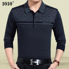 2016春秋冬薄款中年男士长袖t恤翻领T桖条纹针织爸爸装t恤 体恤