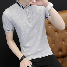夏季男韩版修身短袖T恤简约休闲翻领半袖体恤衫夏天潮流男装衣服