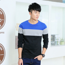 男士秋季长袖t恤青少年圆领打底衫撞色男潮秋衣韩版时尚衣服男装
