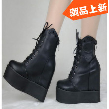 2016秋冬欧美坡跟短靴厚底内增高女鞋防水台夜店超高跟靴子12cm高