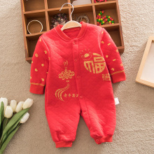 秋冬季婴幼儿保暖连体衣哈衣男女宝宝大红色婴儿两用档爬服新年装