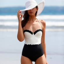 新款爆款欧美外贸性感连体泳衣花边黑白拼色速卖通热销游泳衣女