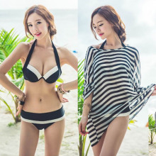 韩国性感比基尼泳衣女小胸聚拢带钢托防晒衫分体三件套温泉bikini