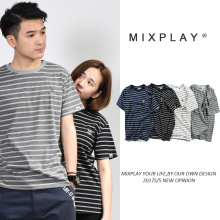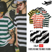 潮牌港日原宿新款简约陈冠希条纹个性图案休闲余文乐圆领T恤