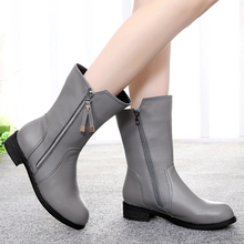 2016新款马靴粗跟中筒靴女中高跟马丁靴秋冬靴真皮女靴子中靴棉靴