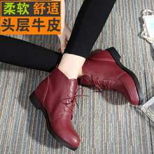 2016新款秋冬鞋内增高女鞋坡跟单鞋休闲女鞋妈妈平底中跟真皮鞋子
