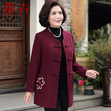 中老年妈妈装春装毛呢外套中年女装冬装上衣时尚大码奶奶装唐装女