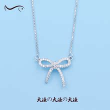 S925纯银项链韩国气质甜美蝴蝶结项链镶钻锁骨链女百搭礼物