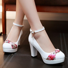 2016新款粗跟防水台女鞋春秋时尚百搭职业工作单鞋韩版拼色高跟鞋