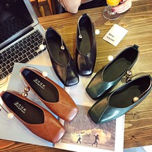 韩版2017春季新款时尚复古方头女鞋百搭浅口脚环珍珠平底单鞋包邮