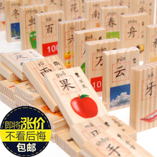 木丸子看图识字多米诺骨牌100片 儿童木质玩具 早教益智积木玩具