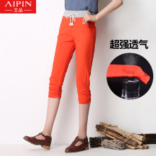 夏季2017新款棉麻七分裤女修身大码休闲裤薄款小脚哈伦裤百搭女裤