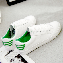 17夏季绿尾小白鞋女平底系带韩版帆布鞋女透气休闲鞋学生白色板鞋