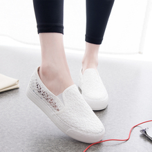 夏季透气小白鞋女蕾丝帆布鞋女韩版懒人鞋平底一脚蹬白色乐福鞋女