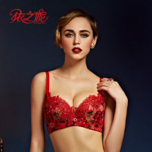 依之妮商场同款本命年中国风收副乳蕾丝内衣聚拢上托彩印刺绣文胸