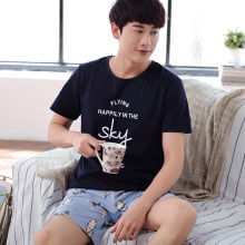 淑女猫 夏季男士睡衣纯棉短袖短裤可外穿男薄夏天全棉家居服韩版