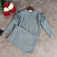 韩国童装2017年春秋季新品女童木耳边修饰毛衣+包臀裙两件套