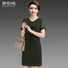2017夏季新款 短袖雪纺连衣裙妈妈装裙子40-50岁包臀裙中老年女装
