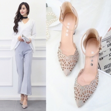 女士凉鞋2017新款百搭真皮水钻香槟色夏季镂空包头一字扣细高跟鞋