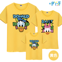 唐老鸭亲子装潮牌白色夏季短袖衣服成人加大码家庭装父子母女装