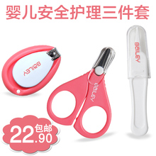 婴儿指甲剪安全剪刀 宝宝防夹肉指甲钳 新生儿镊子儿童护理三件套