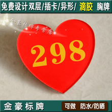 胸牌定做心形胸牌漂亮宝贝工牌心形号码牌大红色心形工号牌