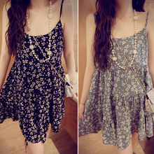 2017春秋季韩国新款甜美小清新复古碎花连衣裙 吊带短裙A字蛋糕裙