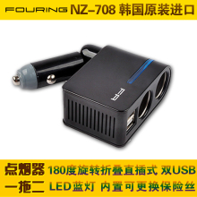 韩国Fouring一拖二汽车载充电器电源一分二带双USB车用折叠点烟器
