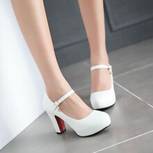 2017新款粗跟单鞋女高跟浅口甜美系搭扣性感春秋夏防水台女鞋圆头